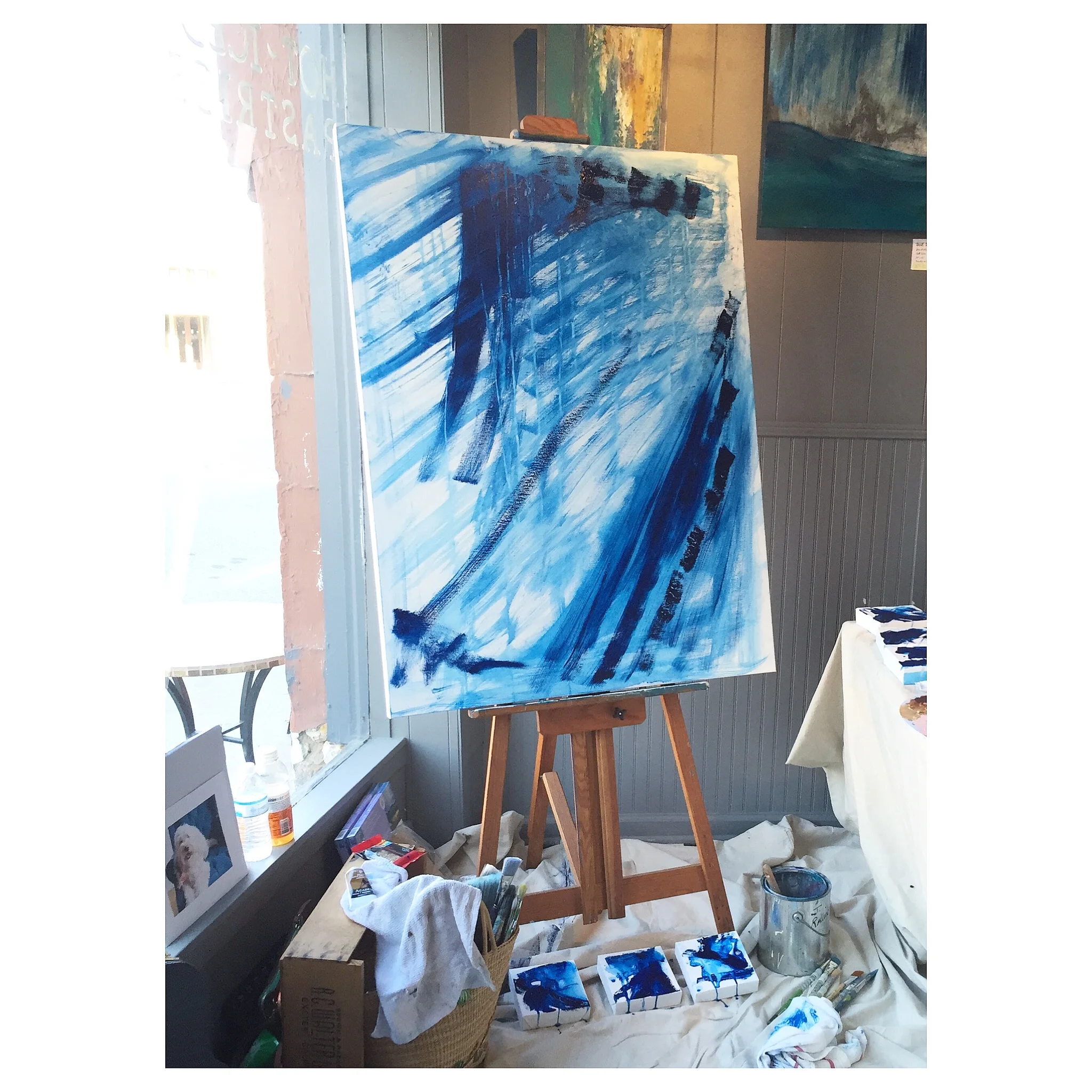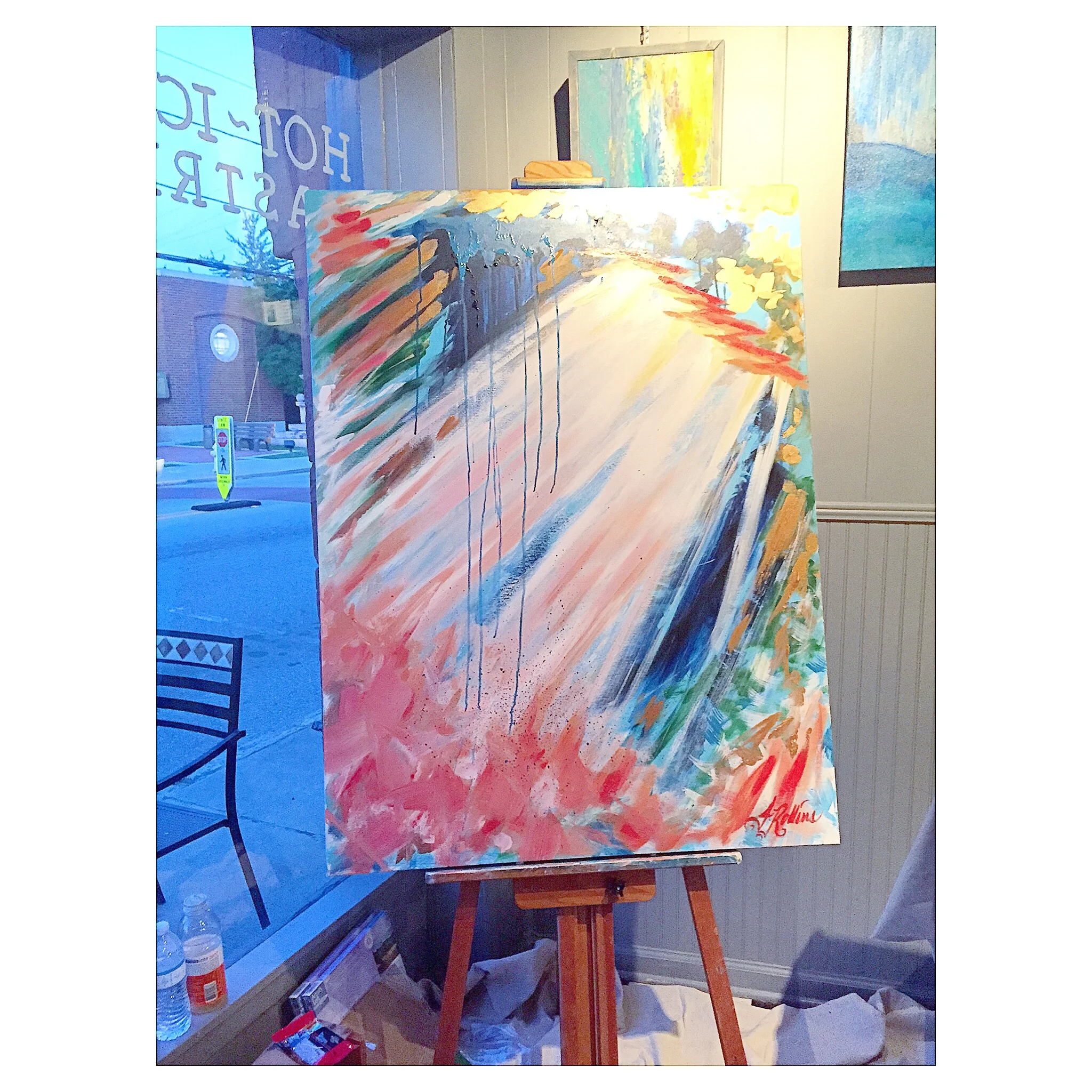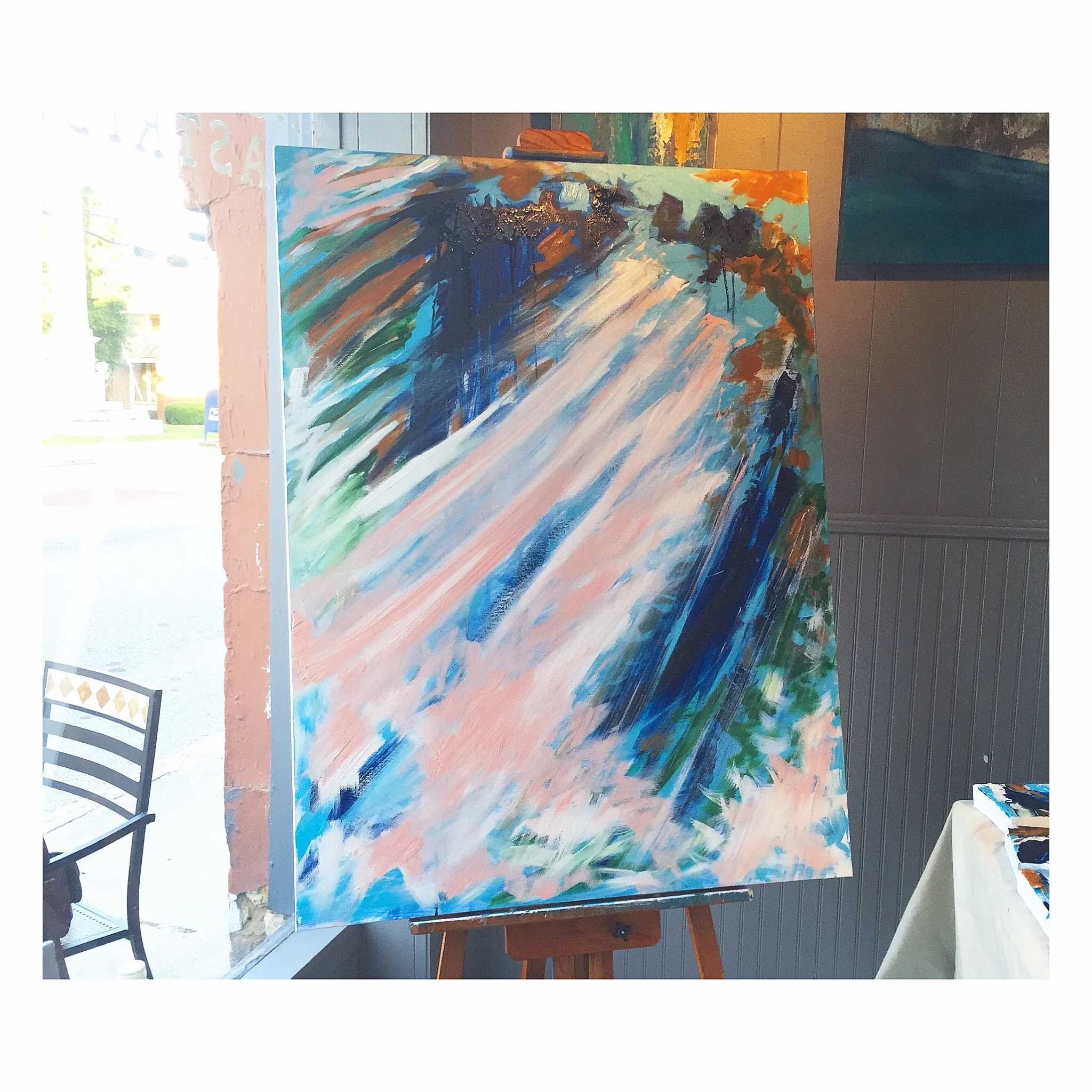 More layers of color. Looking like something now. The live music influenced my brush strokes and color selection.